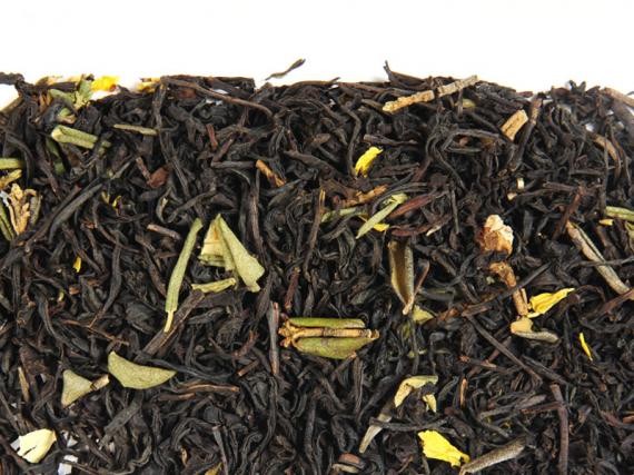 Смесь черного байхового крупнолистового индийского и зеленого китайского чая, дополненная ароматным чабрецом, цветками липы и ромашки, душицей, мятой, зверобоем и шалфеем. Известно, что чабрец оказывает противовоспалительное действие, а душица и мята успокаивают, благодаря чему напиток получается не только вкусным, но еще и полезным. Состав: чай черный байховый крупнолистовой (Индия), чай зеленый байховый крупнолистовой (Китай), измельченный чабрец, цветки липы, душица, цветки ромашки, листья мяты перечной, зверобой, шалфей.