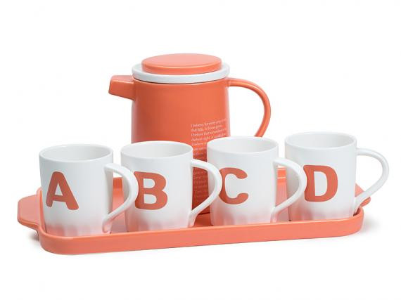 Набор "Буквы", чайник и 4 кружки, оранжевый, 750мл/180мл Акция! скидка 45% с 05.06.2025 по 31.10.2025. Цена указана до применения скидки.