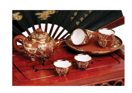 Набор: чайник (150 мл), 6 пиал (30 мл), поднос. Применение бытовое. Мыть без применения абразивных моющих средств.
