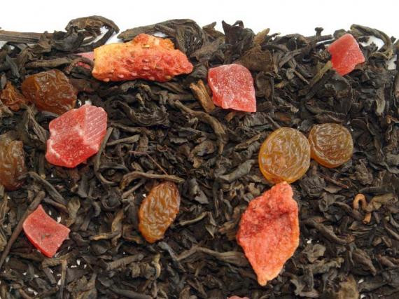 Чай пу-эр в сочетании со слайсами клубники, изюмом, кусочками ананаса, придает напитку обволакивающий вкус и приятное долгое послевкусие. Состав - чай пу-эр, изюм, ароматизатор, кусочки ананаса (ананас, сахар, регулятор кислотности: лимонная кислота), слайсы клубники.