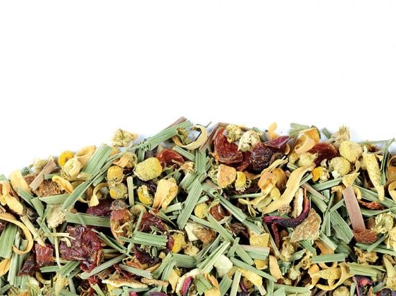 Натуральная травяная смесь из соцветия ромашки, лимонной травы, дополненная мятой, гибискусом, корочками цитрусовых и шиповником, с апельсиновым вкусом. Состав: плоды шиповника, корочки цитрусовых, соцветия ромашки, лимонная трава, цветки апельсина, гибискус, мята, ароматизировано маслами.