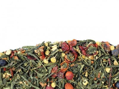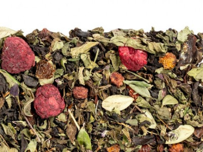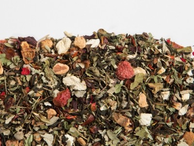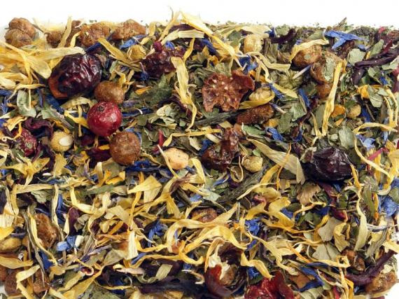 Смесь листьев черной смородины, резаных цветков гибискуса, перечной мяты, ромашки, зеленого чая, чабреца, лепестков календулы и василька, с добавлением плодов шиповника, кусочков яблока и ягод красной смородины и облепихи поможет укрепить иммунитет, повысить тонус организма, справиться с нервным напряжением и усталостью. Состав: Листья черной смородины, цветки гибискуса резаные, оболочка плодов шиповника, лист мяты перечной, ягоды облепихи, кусочки яблока, ромашка, чай зеленый рассыпной листовой крупный, лепестки календулы, чабрец, лепестки василька, ягоды красной смородины, ароматизатор