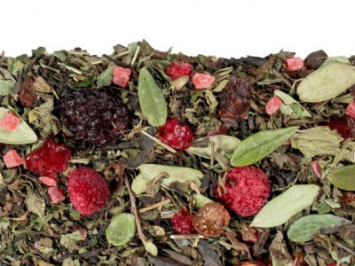 Травяной сбор в составе с шиповником, листьями мелисы и мяты, добавлением индийского черного чая, листа брусники, корнем валерьяны, украшенный ягодами малины и красной смородины. Идеально подходит для чаепития в вечернее время. Состав - ананас сушеный кубики (ананас, сахар, регулятор кислотности: лимонная кислота), оболочка плодов шиповника, листья мелисы, Иван-чай черный, чай черный рассыпной листовой средний (Индия), мята перечная (лист), ягоды ежевики, лист брусники, кусочки корня валерианы, ягоды красной смородины, ягоды малина.