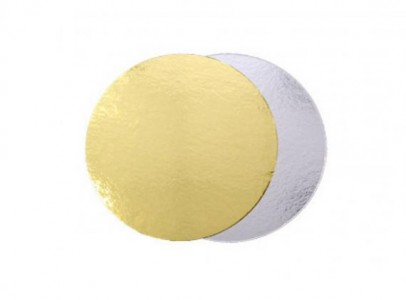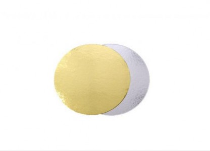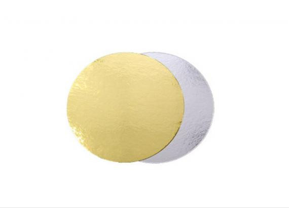 Подложка двусторонняя Золото/Серебро Возможно использование для создания подарочного торта из чая. Форма: Круг диаметром 30 см. Материал: картон с дополнительным покрытием золотой и серебряной фольгой.