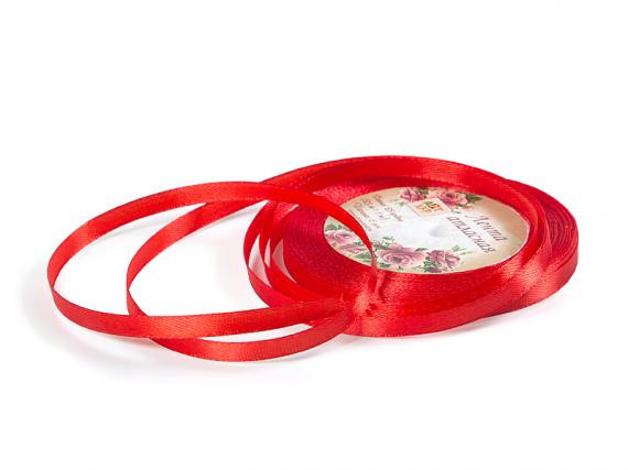 Лента атласная в рулоне. Ширина 6 мм, длина 25 м. Цвет красный