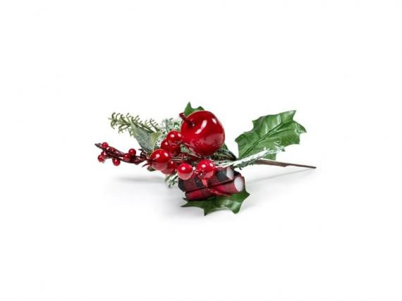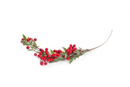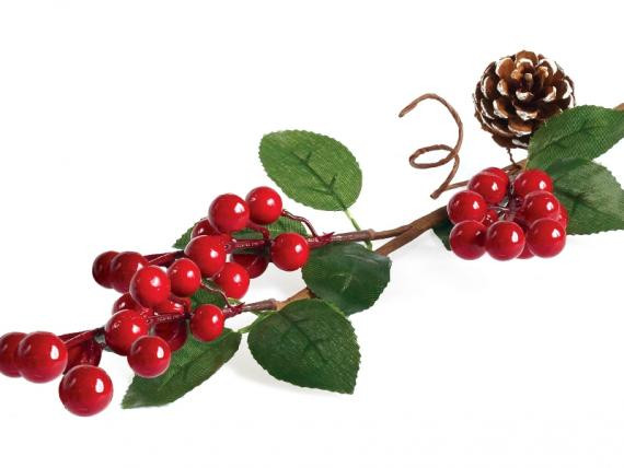 Новогодняя блестящая декоративная ветвь с ягодками красного цвета. Отличное дополнение новогоднего оформления подарка! Гибкая основи и длина 58см дает возможность использовать ветвь как в оформлении подарочных корзин, так и в оформлении букетов. Приятных новогодних эмоций от ярких чайных подарков!