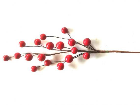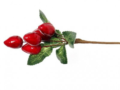 Декоративный элемент в виде красных ягод для офомления чайных подарков. Дополнит визуально и привнесет настроение вашему подарку! Имеет плотную, но гибкую основу и размер 17-18см, благодаря чему отлично крепится к лентам и картонным упаковкам.