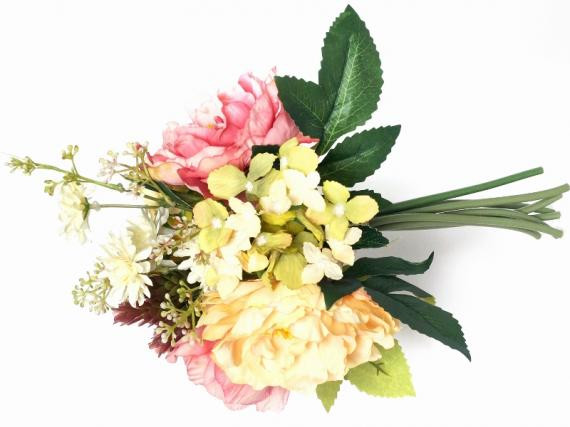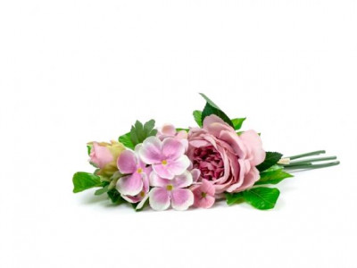 Декоративный букет искусственных цветов орхидей и гортензий нежных бело-розовых оттенков. Каждый цветок имеет отдельное основание и может быть использован самостоятельно для украшения композиции. Идеально дополнит оформление чайного или кофейного букета или подарочного набора.