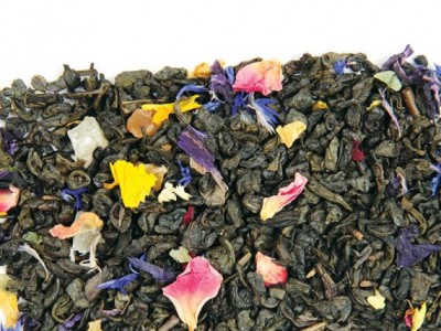 Купаж черного и зеленого чая с добавлением кусочков яблока, лимона, абрикоса, лепестков розы и календулы, обладает ярким вкусом и насыщенным ароматом. Состав : Чай зеленый рассыпной листовой крупный (Китай), чай черный рассыпной листовой крупный, кусочки яблока, лепестки розы красной, сегменты лимона, ароматизаторы, кусочки абрикоса, лепестки календулы