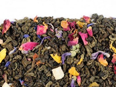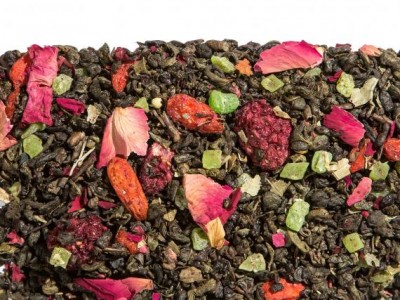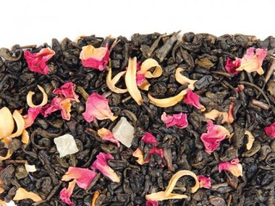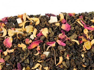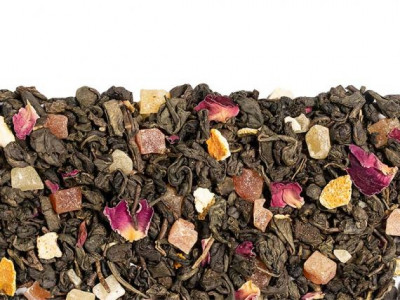 Крупный китайский зеленый порох с кусочками ананаса, лепестками розы, цедрой цитрусовых и нежным ароматом айвы. Состав - Чай зеленый рассыпной листовой крупный (Китай), кусочки папайи (папайя, сахар, регулятор кислотности: лимонная кислота), кусочки ананаса (ананас, сахар, регулятор кислотности: лимонная кислота), цедра апельсина, ароматизатор, лепестки розы красной