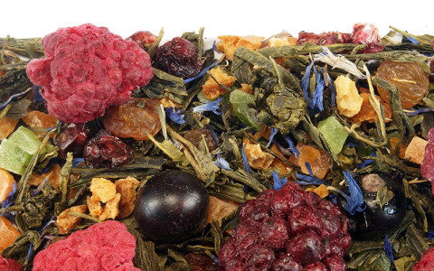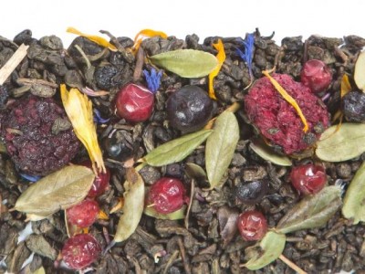 Крупнолистовой зеленый китайский чай в сочетании с улуном, цукатами ананаса, изюмом, ягодами красной и черной смородины, кусочками абрикоса, ягодами малины и ежевики приобретает насыщенный смородиново-ягодный аромат. Состав : чай зеленый рассыпной листвой крупный, чай красный (оолонг) рассыпной листовой крупный, цукаты ананаса, изюм, ароматизаторы, ягоды черной смородины, ягоды красной смородины, кусочки абрикоса, ягоды малины, ягоды ежевики, лепестки василька......