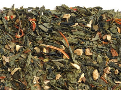 Купаж Органик. Крупнолистовой китайский зеленый чай, цедра лимона, кусочки имбиря, корица, корень солодки с капельками цитрусового масла. Способствует укреплению иммунитета. Состав: чай зеленый рассыпной листовой крупный, цедра лимона, кусочки имбиря, корица, лимонный мирт, кусочки моркови, корень солодки, цитрусовое масло