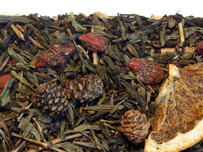 Чай зеленый с добавками С НОВЫМ ГОДОМ! (Бой курантов) Состав: чай зеленый рассыпной листовой крупный, ягоды годжи, сегменты апельсина, шишки сушеные, ароматизаторы, ягоды малины, ягоды красной смородины, кусочки клубники......